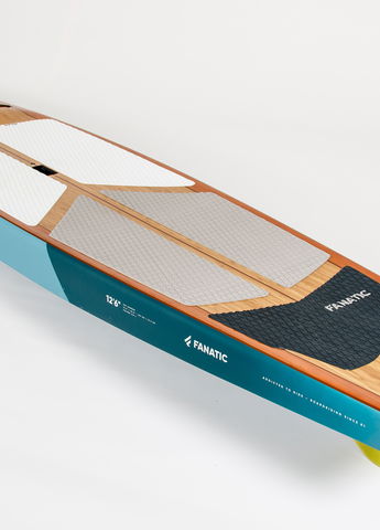 Benefiting from the development of our raceboards, the Ray allows you to cover maximum distance with minimum effort, thanks to a highly efficient rocker line based on the Strike. The slightly recessed deck, wide tail and high apex rails maintain the super stable ride, allowing you to track easily in both flat water and chop. One shape (12'6" × 28.5") is available in two construction options: Our new optical highlight, the precious Ray Bamboo Edition and our value minded Ray Pure.